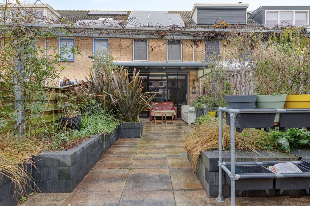 De woning aan de achterzijde beschikt over een moderne aluminium terrasoverkapping met zonnewering.